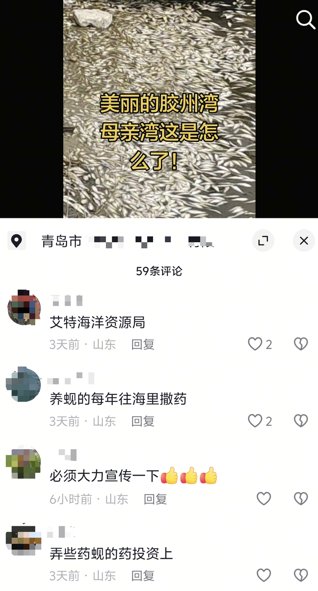 华商报大风新闻记者搜索酬酢平台发现,近期也有当地市民发布视频曝光胶州湾岸边出现死鱼的情况。4月21日,记者筹商到其中一位视频发布者,对方在青岛磋商水产店。